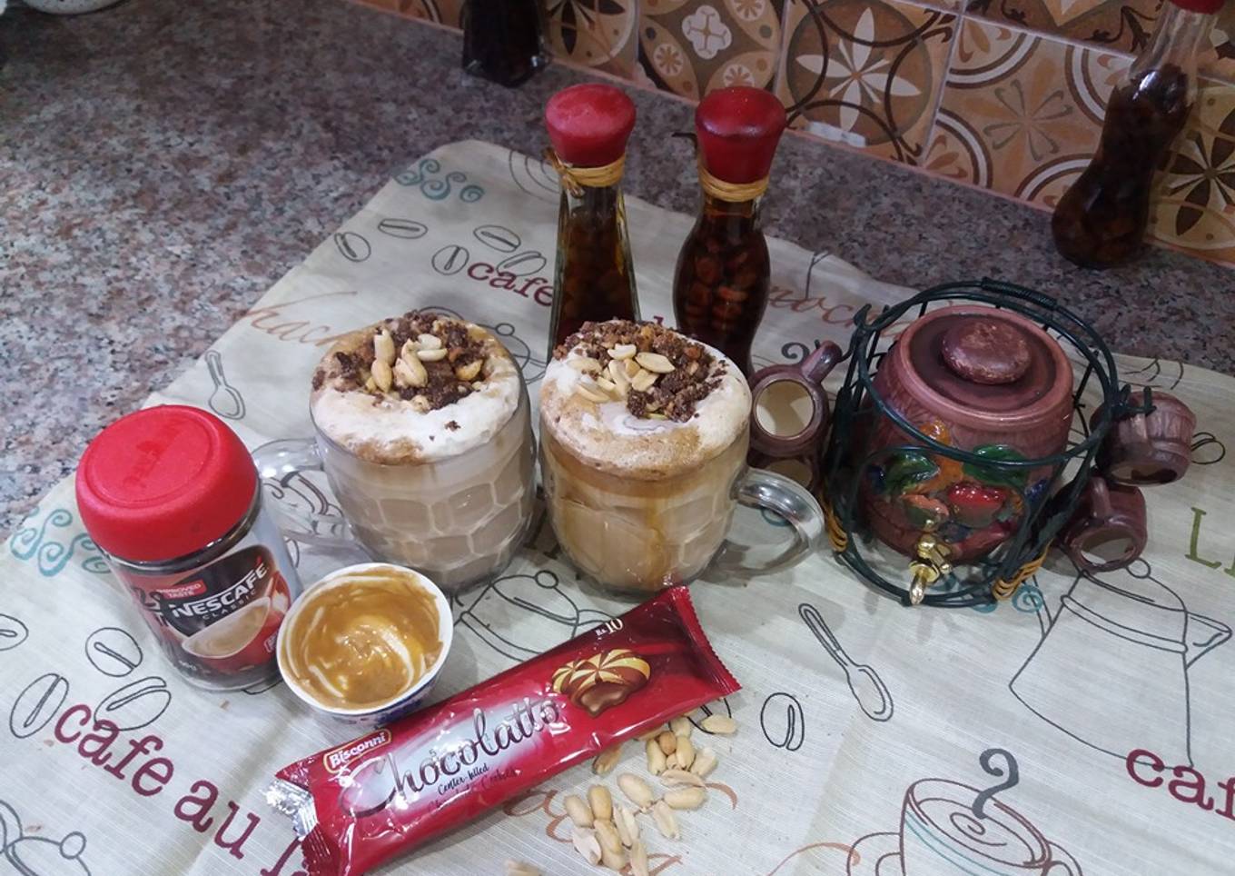- Pour into serving glasses and top with some scoops of ice cream,blended coffee and crushed biscuits.