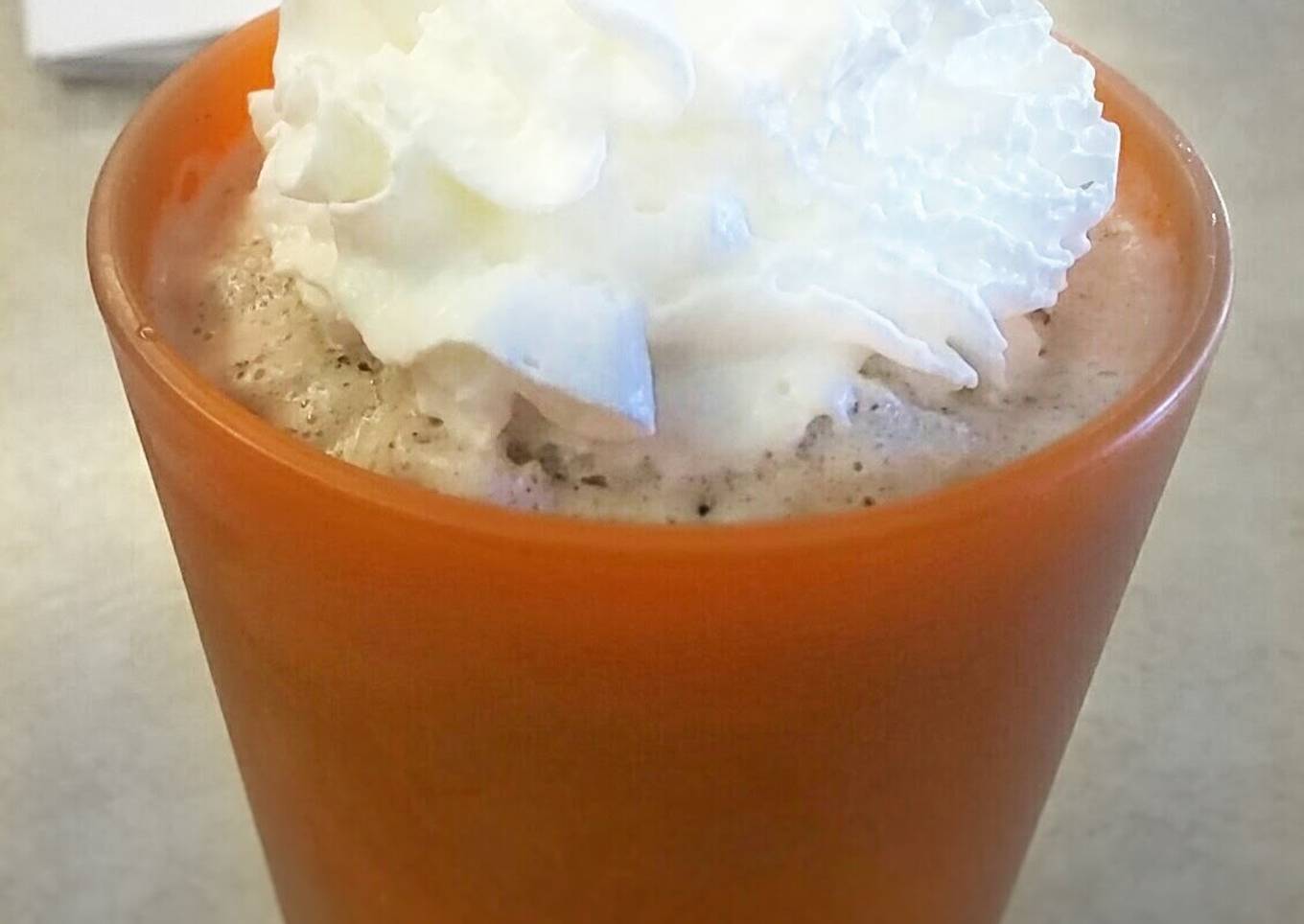 - Blend until a foamy consistency, top with whipped cream if desired
